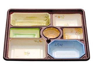 用途:冠婚葬祭時の会席料理。小さいサイズの物は高級な弁当に使用できます。1200円〜1800円の弁当に。 特徴:蓋はHIPS(PS)、本体は定位置で印刷しており、盛り付けした折のボリューム感があがります。本体はHIPS(PS)樹脂を使用しています。 |