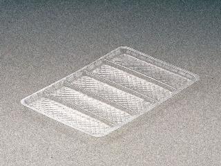 用途:珍味トレー 特徴:PP素材のトレー。内容物の形状を保護し形崩れを防ぐとともに、PP素材なので油、薬品に強い。耐油性、耐薬品性。 |