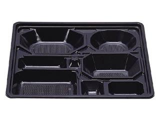 用途:冠婚葬祭時の会席料理。小さいサイズの物は高級な弁当に使用できます。1200円〜1800円の弁当に。 特徴:蓋はOPS(PS)、本体はHIPS(PS)樹脂を使用しています。 |