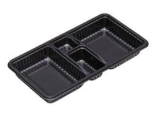 用途:化成品の弁当容器。低価格の弁当にご使用ください。500円〜1000円の弁当に。 特徴:蓋はOPS(PS)素材使用で中がよく見えます。本体はHIPS(PS)を使用しており、衝撃に強い。 |