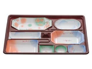 用途:冠婚葬祭時の会席料理。小さいサイズの物は高級な弁当に使用できます。2000円〜3500円の料理に。 特徴:蓋はHIPS(PS)、本体は定位置で印刷しており、盛り付けした折のボリューム感があがります。本体はHIPS(PS)樹脂を使用しています。 |