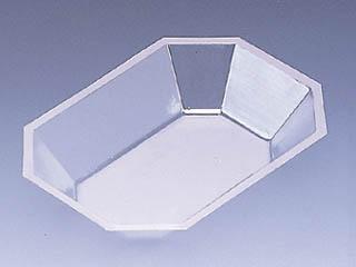 用途:会席料理のトレー。刺身、その他の魚介類等 特徴:OPS(PS)素材のトレー。内容物の形状を保護し形崩れを防ぎます。 |