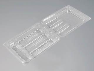 用途:串団子3本用。 特徴:OPS(PS)素材使用で透明性に優れ、こしがあり強い。蓋が嵌合になっているので、テープなど不要。仕切りも付いているので、内容物がずれず安心です。餡(あん)を乗せた団子など、高さのあるものでも蓋に付きにくい形状です。 |