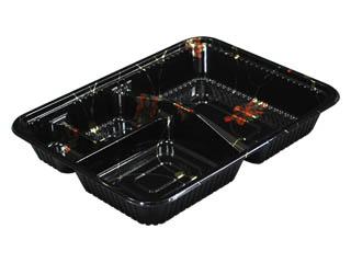 用途:化成品の弁当容器。低価格の弁当にご使用ください。500円〜800円の弁当に。 特徴:蓋はOPS(PS)素材使用で中がよく見えます。本体はHIPS(PS)を使用しており、衝撃に強い。 |