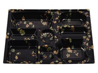 用途:会席膳用紙容器。中仕切はHIPS(PS)樹脂製です。冠婚葬祭の場所を選ばないデザインが料理を引き立てます。特に定置の柄が器一つ一つ個別の雰囲気をかもし出します。3500円〜6000円の料理に。 特徴:紙製。足付き(上げ底)でボリューム感があり、食膳を華やかに演出する最高級シリーズです。完全組み立て、完納ですから、組み立ての手間もかかりません。 |