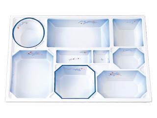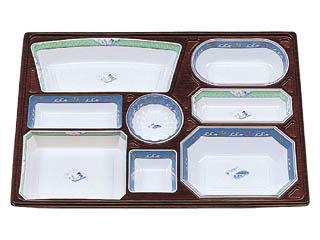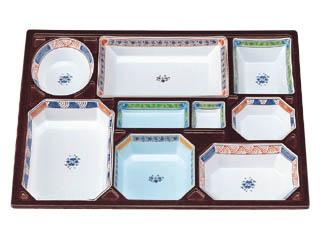用途:会席膳用紙容器。中仕切はHIPS(PS)樹脂製です。冠婚葬祭の場所を選ばないデザインが料理を引き立てます。例えば桃山柄は暖色系の暖かさが引き立ちます。4000円〜8000円の料理に。 特徴:紙製。足付き(上げ底)でボリューム感があり、食膳を華やかに演出する最高級シリーズです。完全組み立て、完納ですから、組み立ての手間もかかりません。 |