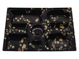用途:会席膳用紙容器。中仕切はHIPS(PS)樹脂製です。冠婚葬祭の場所を選ばないデザインが料理を引き立てます。例えば桃山柄は暖色系の暖かさが引き立ちます。4000円〜8000円の料理に。 特徴:漆塗りの風合いが格調と豪華さを漂わせる、ワンタッチ組み立ての会席料理ボックスです。コンパクトに折りたたんだ状態でお届けしますので、収納スペースも取らず、強度も十分あります。額縁構造によるボリューム感で1ランク上の豪華さを満足いただけます。 |