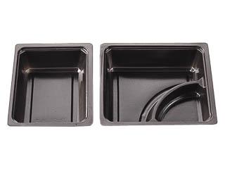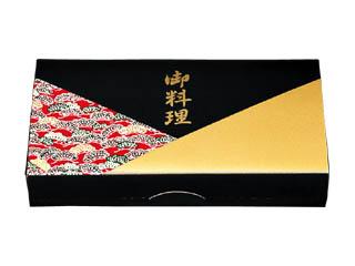 製品紹介 用途:弁当用紙容器。中仕切はHIPS(PS)樹脂製です。冠婚葬祭の場所を選ばないデザインが料理を引き立てます。700円〜1000円の弁当に。