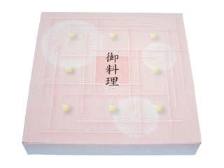 製品紹介 用途:弁当用紙容器。中仕切はHIPS(PS)樹脂製です。冠婚葬祭の場所を選ばないデザインが料理を引き立てます。特に定置のみやこ柄が器一つ一つ個別の雰囲気をかもし出します。1000円〜1300円の弁当に。