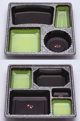 用途:会席弁当用紙容器。中仕切は定位置で印刷しており、盛り付けした折のボリューム感があがります。HIPS(PS)樹脂製です。冠婚葬祭の場所を選ばないデザインが料理を引き立てます。 特徴:二段の紙製品。足付き(上げ底)でボリューム感があり、食膳を華やかに演出する最高級シリーズです。完全組み立て、完納ですから、組み立ての手間もかかりません。 |