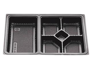 用途:弁当用紙容器。中仕切はHIPS(PS)又はPPF(フィラー入りPP)樹脂製です。冠婚葬祭の場所を選ばないデザインが料理を引き立てます。PPF製品は耐油性、耐熱性があり、電子レンジにOK。1000円〜1300円の弁当に。 特徴:蓋と本体が一体型でワンタッチで組み立てられる、組立式の料理ボックスです。コンパクトに折りたたんだ状態でお届けしますので、収納スペースも取らず、強度も十分あります。 |