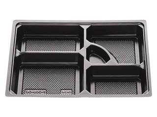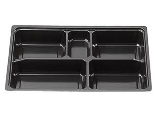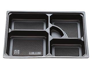 製品紹介 用途:弁当用紙容器。中仕切はHIPS(PS)又はPPF(フィラー入りPP)樹脂製です。冠婚葬祭の場所を選ばないデザインが料理を引き立てます。PPF製品は耐油性、耐熱性があり、電子レンジにOK。1000円〜1500円の弁当に。